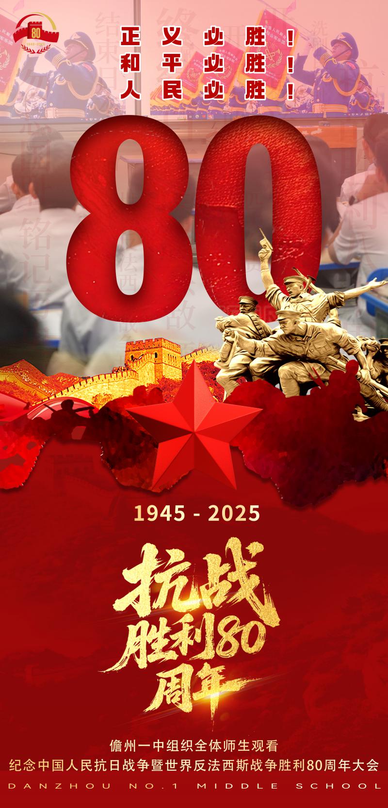 80年前,硝烟弥漫,中国人民经过艰苦卓绝的浴血奋战,最终赢得了抗日战争的伟大胜利,为世界反法西斯战争的胜利作出了巨大贡献。80年后的今天,硝烟已散,精神永存。从伟大胜利走向伟大复兴,亿万人民共赴爱国主义的伟大实践。通过观看这次阅兵,儋州一中的全体师生深受鼓舞,内心坚定,将以更加饱满的热情和更加矢志不渝的信念,在学习中勇攀高峰,在成长中践行担当,让青春的脚步与祖国发展同频共振! |