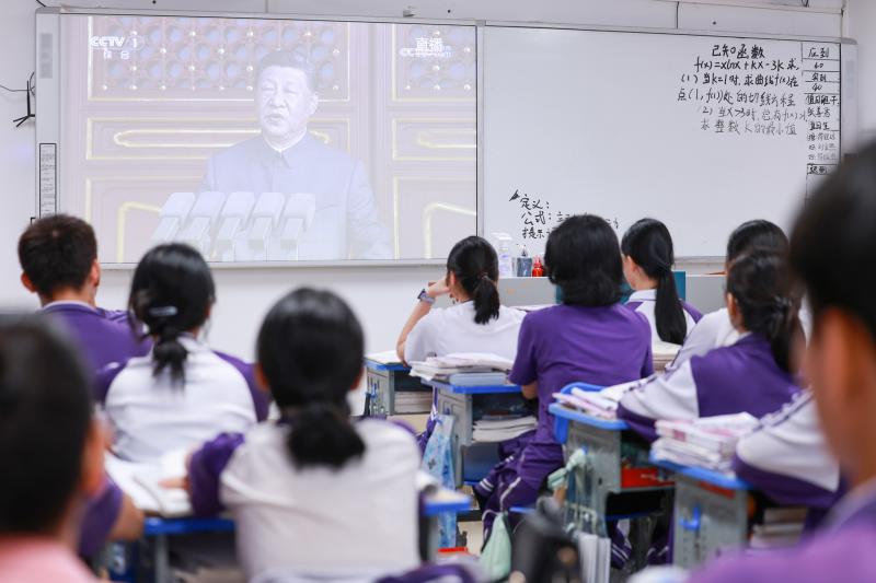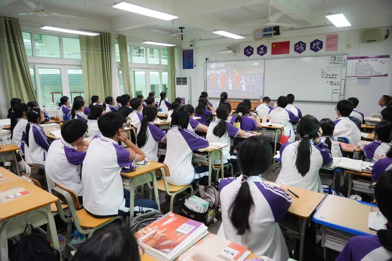 儋州一中组织全体师生观看了此次阅兵仪式。当阅兵式开始,同学们眼神中充满了期待与自豪。随着一个个方队迈着整齐的步伐通过天安门广场,课堂上不时响起阵阵掌声。“看到人民军队如此威武雄壮,我感到无比骄傲和自豪。” 高一(17)班的蒲宁鑫激动地说,“他们的步伐如此整齐,装备如此先进,让我深刻感受到了祖国的强大。我一定要努力学习,将来为祖国的建设贡献自己的力量。”