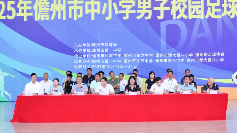10月13日上午,2025年儋州市中小学男子校园足球冬季联赛在儋州市第一中学开幕。市人大常委会党组成员、副主任侯启江,市教育局党委委员、市教育研究培训院院长张文玉,市公安局党委委员、副局长林耀盛,市旅游和文化广电体育局党委委员、副局长郭益华等领导出席开幕式。市第一中学党委书记、校长涂家文主持开幕式。