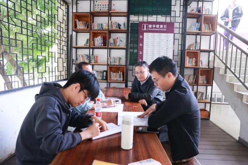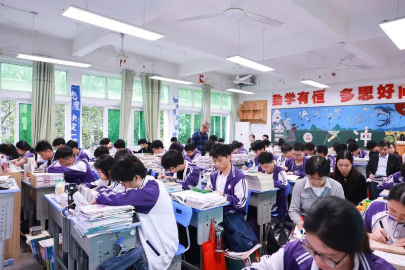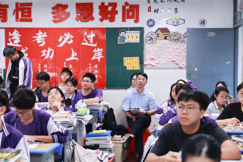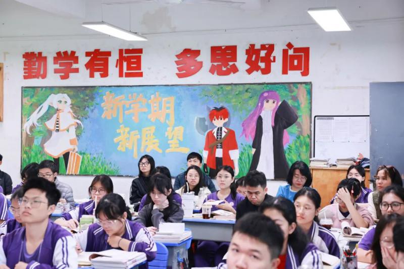 在高三年级16班、18班的课堂上,语文老师林庆金、许真燊展现了扎实的专业功底和落实核心素养的良好教学技巧;数学老师万军在15班的授课中,注重解题思路的引导,助力学生逻辑思维的训练和养成;英语老师黄永霞在11班的课堂上,营造了活跃的互动氛围,让学生在互动中听说能力得到提升;物理老师何国丰在10班授课中,利用AI赋能,把深奥的物理知识,通过精美的课件,深入浅出地向学生展示;政治老师王卓在19班的课堂上,巧妙地将党的二十届四中全会精神融入教学中……在听课过程中,儋州黄冈实验学校的教师们认真记录,细致观察,表现出高度的专业素养。