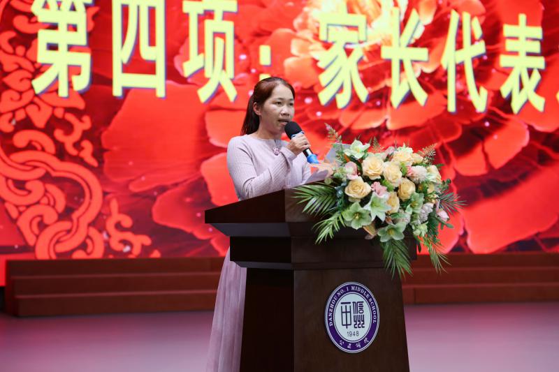 家长代表发言,她首先向学校领导和老师们致以敬意与感谢,感恩其三年来对孩子们的悉心教诲与保驾护航。随后寄语孩子们,正视百日中考冲刺的意义,告知孩子们并非孤军奋战,承诺全体家长将做好后勤保障、心理支撑和同行陪伴。最后送上祝福,期盼孩子们金榜题名,祝愿学校、老师和家长皆顺遂。家长代表的哽咽与期盼,让在场每一个孩子明白:你们从来不是一个人在战斗!