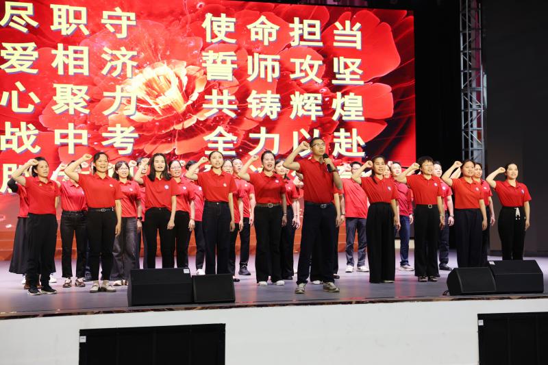 年级组长吴子琪带领全体初三教师庄严宣誓,誓词字字千钧,响彻云霄,尽显师者护航学子决战中考的责任与决心。