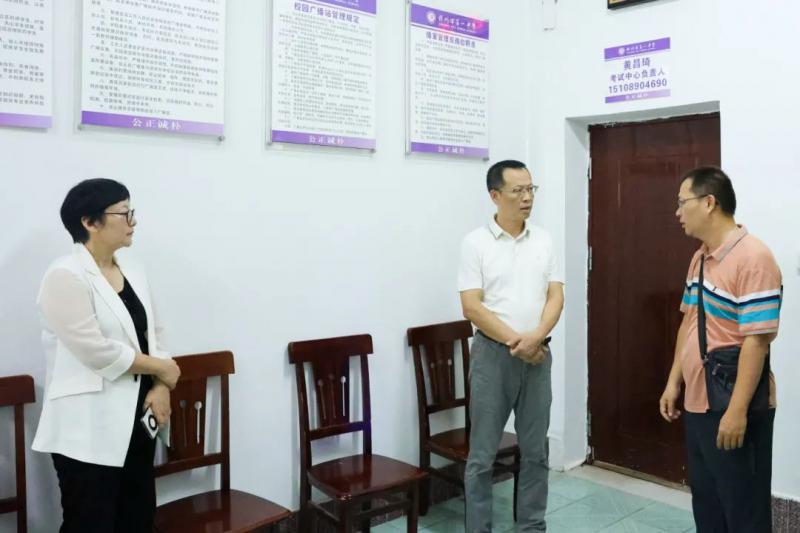 检查组一行实地察看了安检处、保密室、播音室、考务室、监控室等场所,仔细询问考场准备、医疗卫生、服务保障、应急预案等措施落实情况。