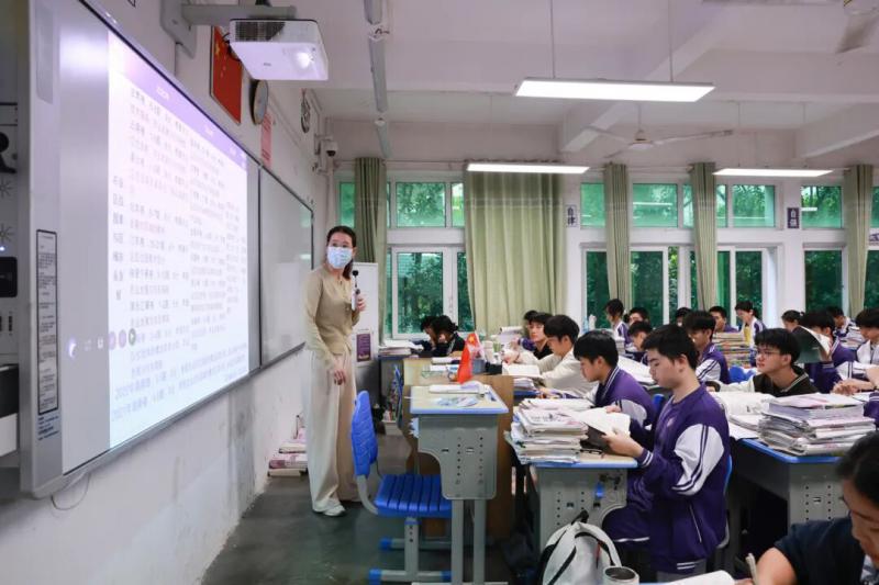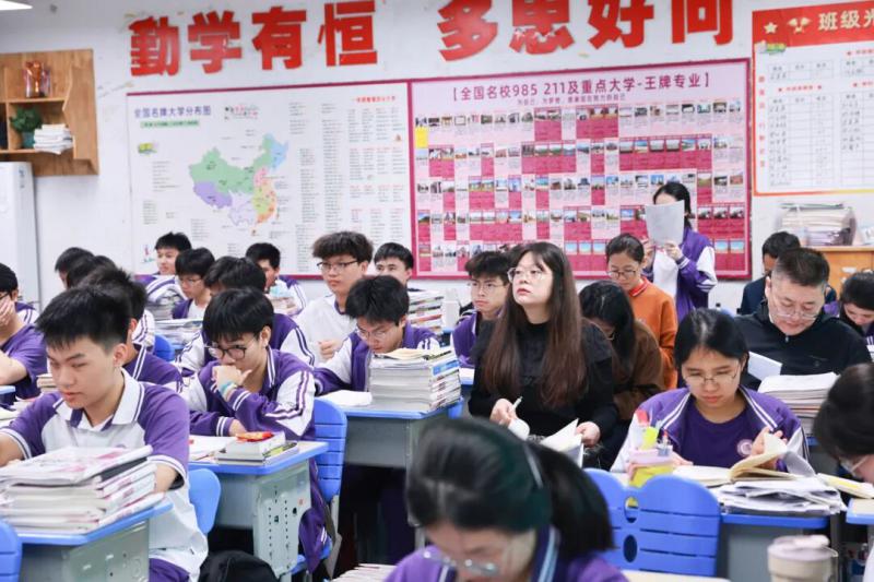 在高三年级16班、18班的课堂上,语文老师林庆金、许真燊展现了扎实的专业功底和落实核心素养的良好教学技巧;数学老师万军在15班的授课中,注重解题思路的引导,助力学生逻辑思维的训练和养成;英语老师黄永霞在11班的课堂上,营造了活跃的互动氛围,让学生在互动中听说能力得到提升;物理老师何国丰在10班授课中,利用AI赋能,把深奥的物理知识,通过精美的课件,深入浅出地向学生展示;政治老师王卓在19班的课堂上,巧妙地将党的二十届四中全会精神融入教学中……在听课过程中,儋州黄冈实验学校的教师们认真记录,细致观察,表现出高度的专业素养。
