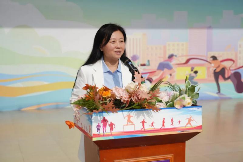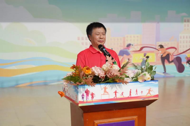 下午,运动会准时拉开帷幕。在副校长李瑛的主持下,初中、高一、高二、高三及行政后勤五个工会小组的运动员们精神抖擞,整齐入场。学校党委委员、执行校长秦德胜发表了热情洋溢的致辞。他代表学校党政领导班子向运动会致以热烈祝贺,向筹备人员和全体教职工表示衷心感谢,并深刻阐释了“健康同行,活力一中”的主题内涵,强调健康是干事创业的基石,活力是学校发展的源泉。最后,秦德胜校长庄严宣布运动会正式开幕。随后,在领跳老师的带动下,全体运动员齐跳健身舞,瞬间点燃了现场的热烈氛围,正式拉开了欢乐竞技的序幕。